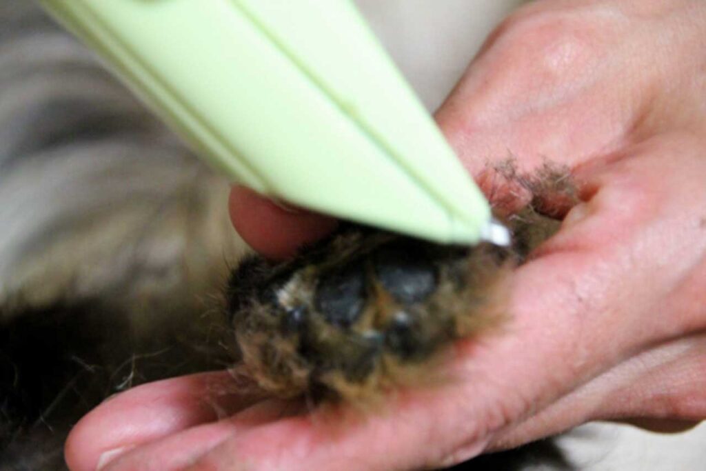 デリケートゾーンの他には、口の周りや肉球の周りなど湿りやすい部分の被毛をカットすることをおすすめします(長毛種の場合)。